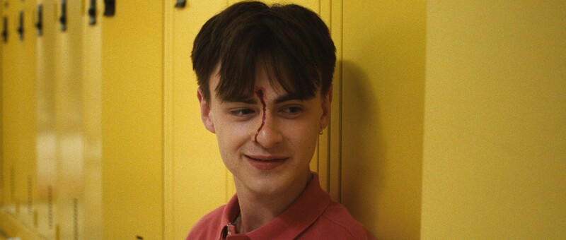While participating in an "active shooter" drill at his school, Balthazar (or "Balty," as he prefers to be called) strikes up a chat with a non-weird classmate named Eleanor (Pippa Knowles, a star). In one of the movie's most boldly icky scenes, Balty takes Eleanor back to his family's penthouse to show her some real-life school-shooting video he's harvested off the web; as it's playing, and we begin to hear sounds of slaughter, he maneuvers his hand onto her thigh and she erupts in disgust.